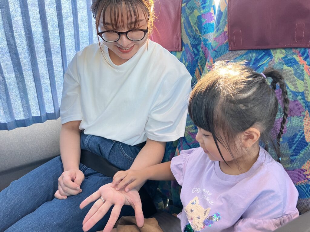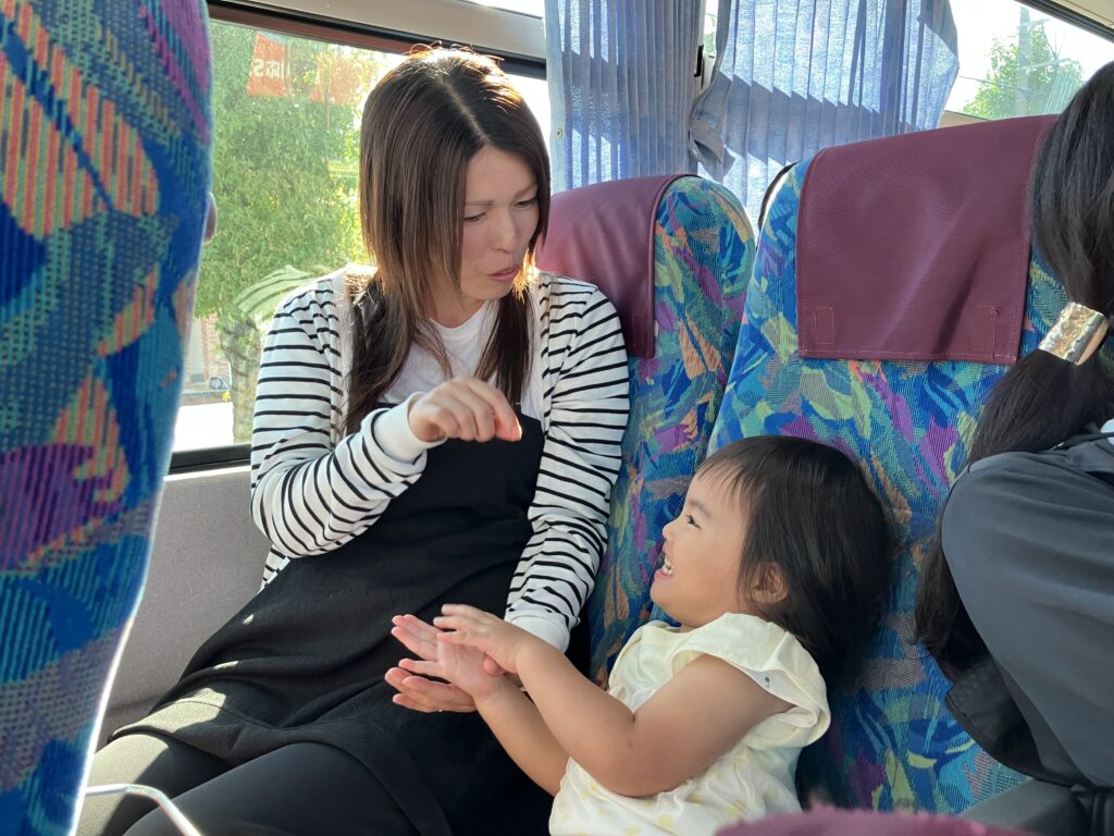 バスの中では、うたを歌ったりふれあいあそびを楽しみました。