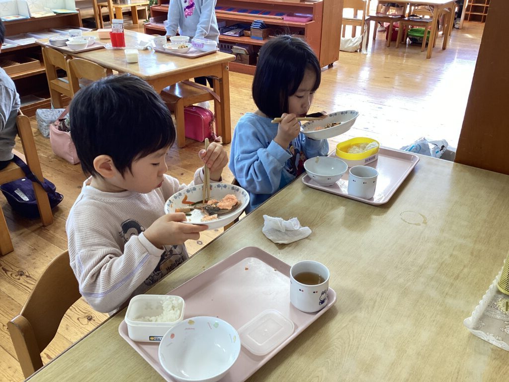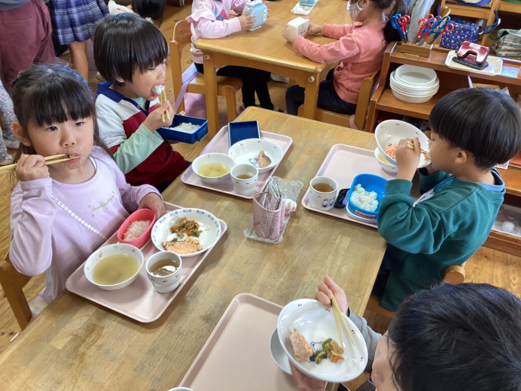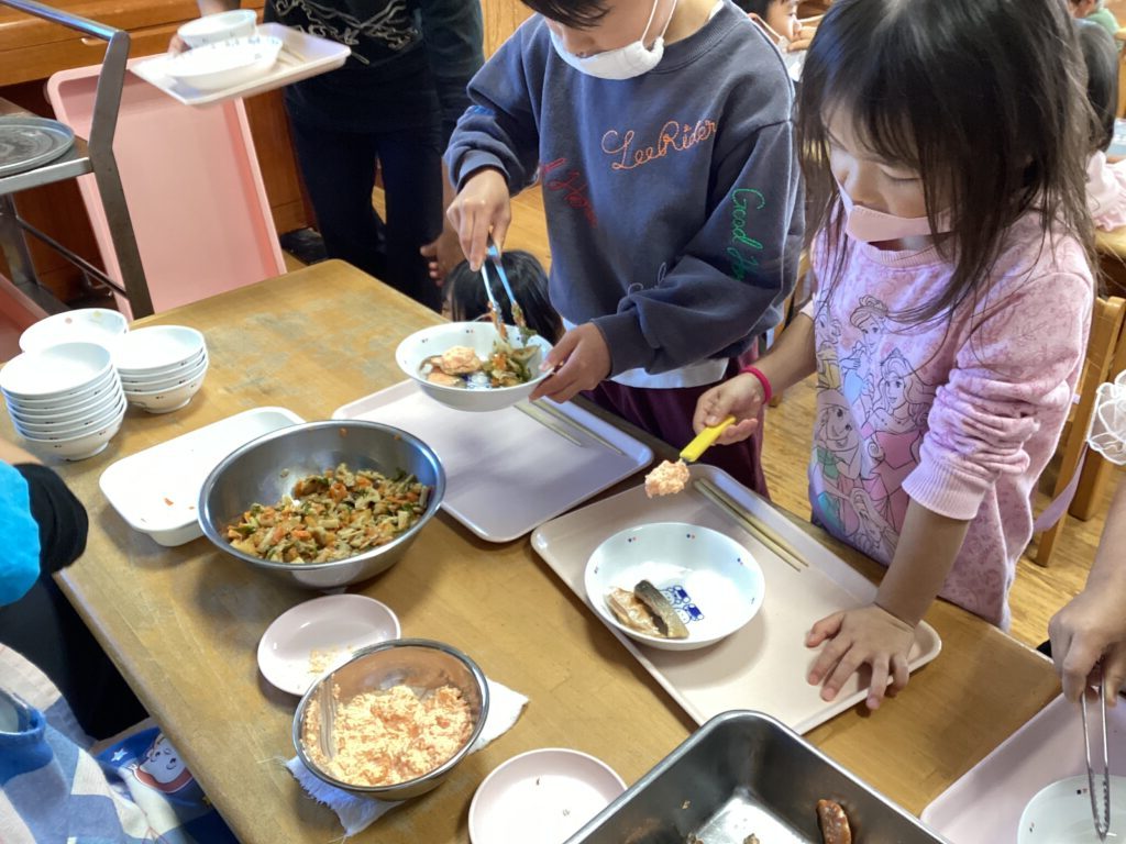 初メニューの「鮭の紅葉焼き」でしたが、子どもたちは人参のソースをたくさんかけて食べていましたよ。