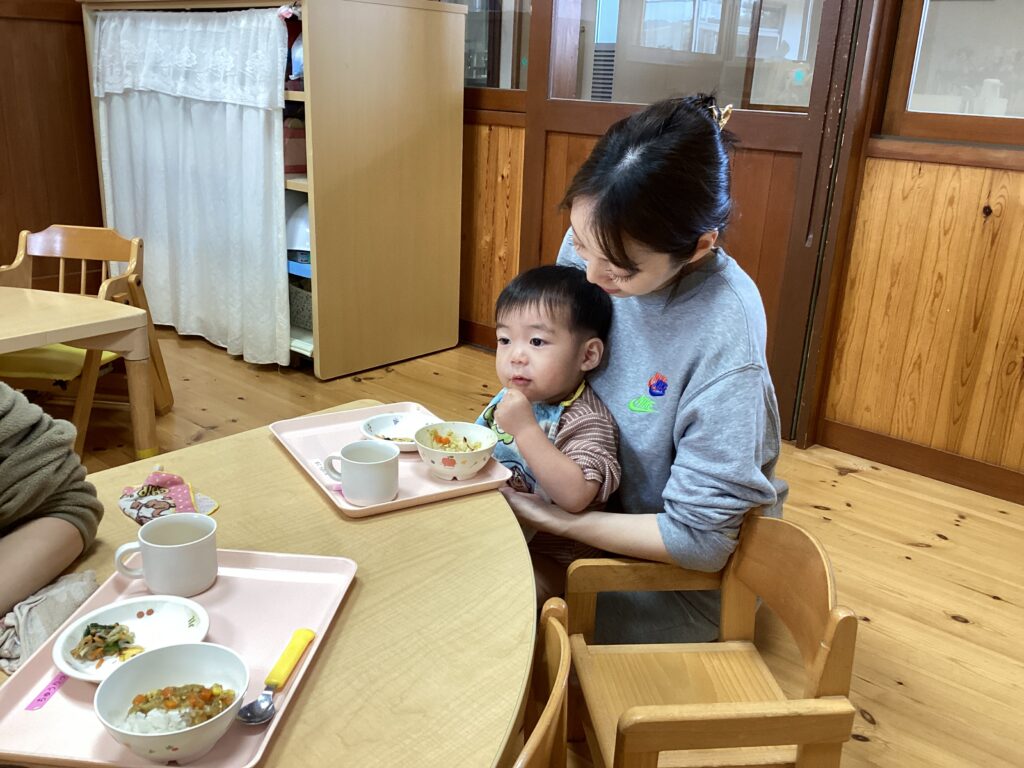園での食事の様子を見て、「家での様子と違います」「たくさん食べるんですね」などの声が聞かれました。