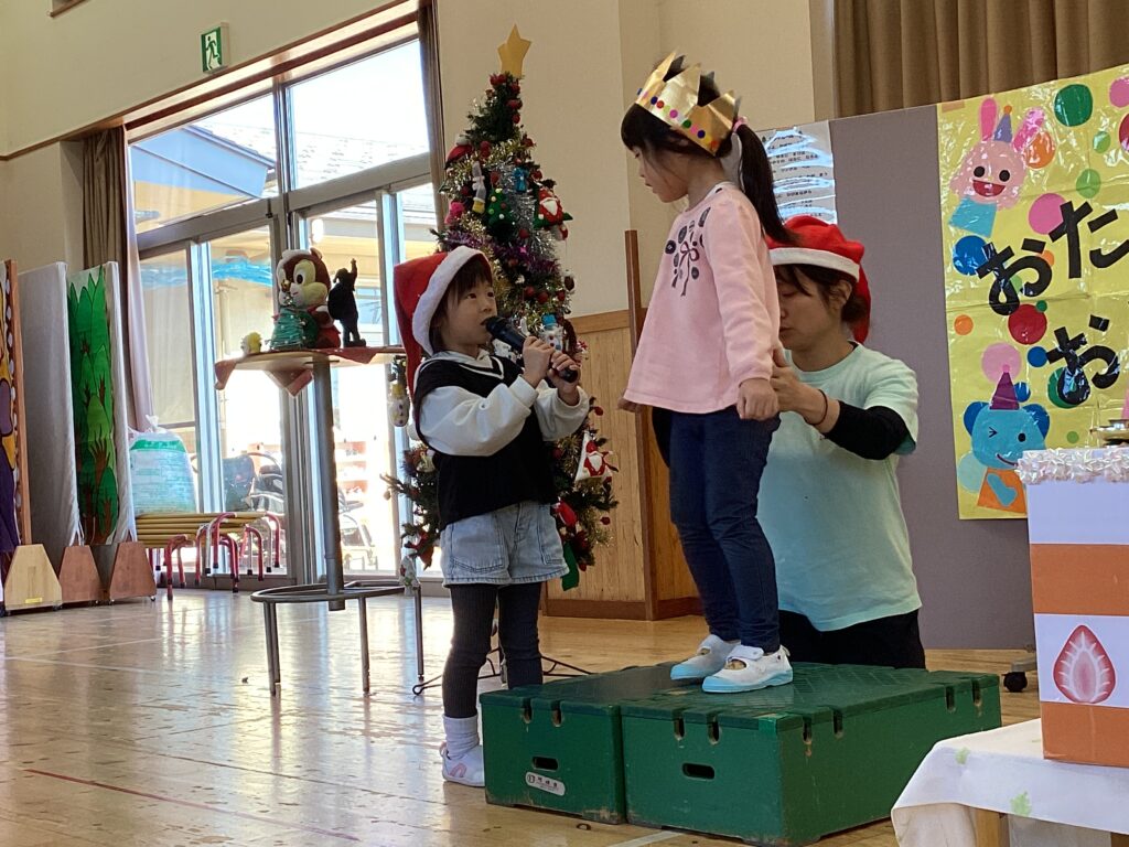 クリスマスが近いということで、進行するふじ組さんにはサンタクロース帽子をかぶってもらいました。