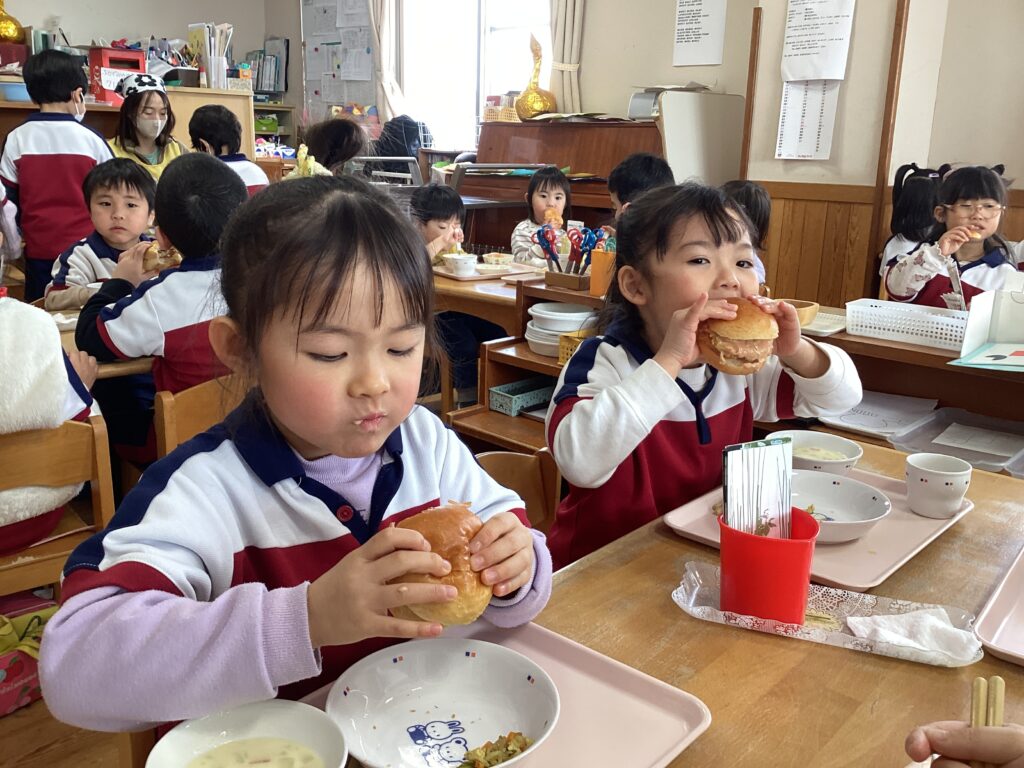 普段の給食とは違ったパンの食べ方でしたが、上手に食べることができました。